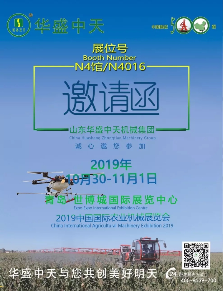 2019中国国际农业机械展邀请函山东华盛中天机械集团展区展位:N4馆/N4016号