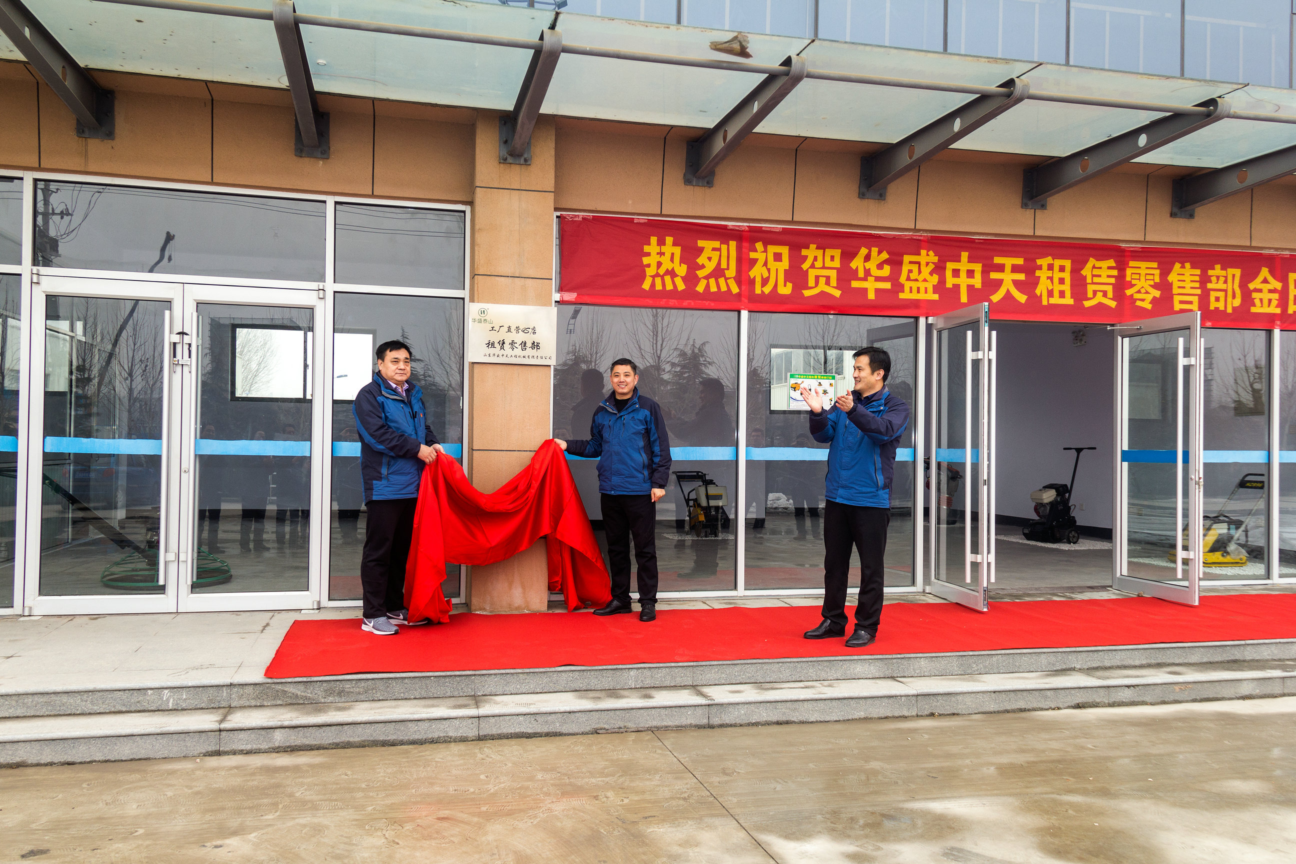 上午10时58分,在隆隆的礼炮声中,公司总经理王胜永、销售总监庄新晓上台共同为4S店开业揭牌并致词,特邀客商代表刘总出席开业典礼并致贺词。华天工程公司高管及销售公司全体员工和客户朋友们---共同见证了工厂直营4S店开启华丽篇章的辉煌时刻。