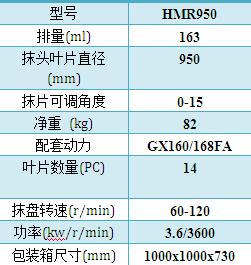 - 汽油机做动力,使用方便;可实现粗抹、精抹两种功能。